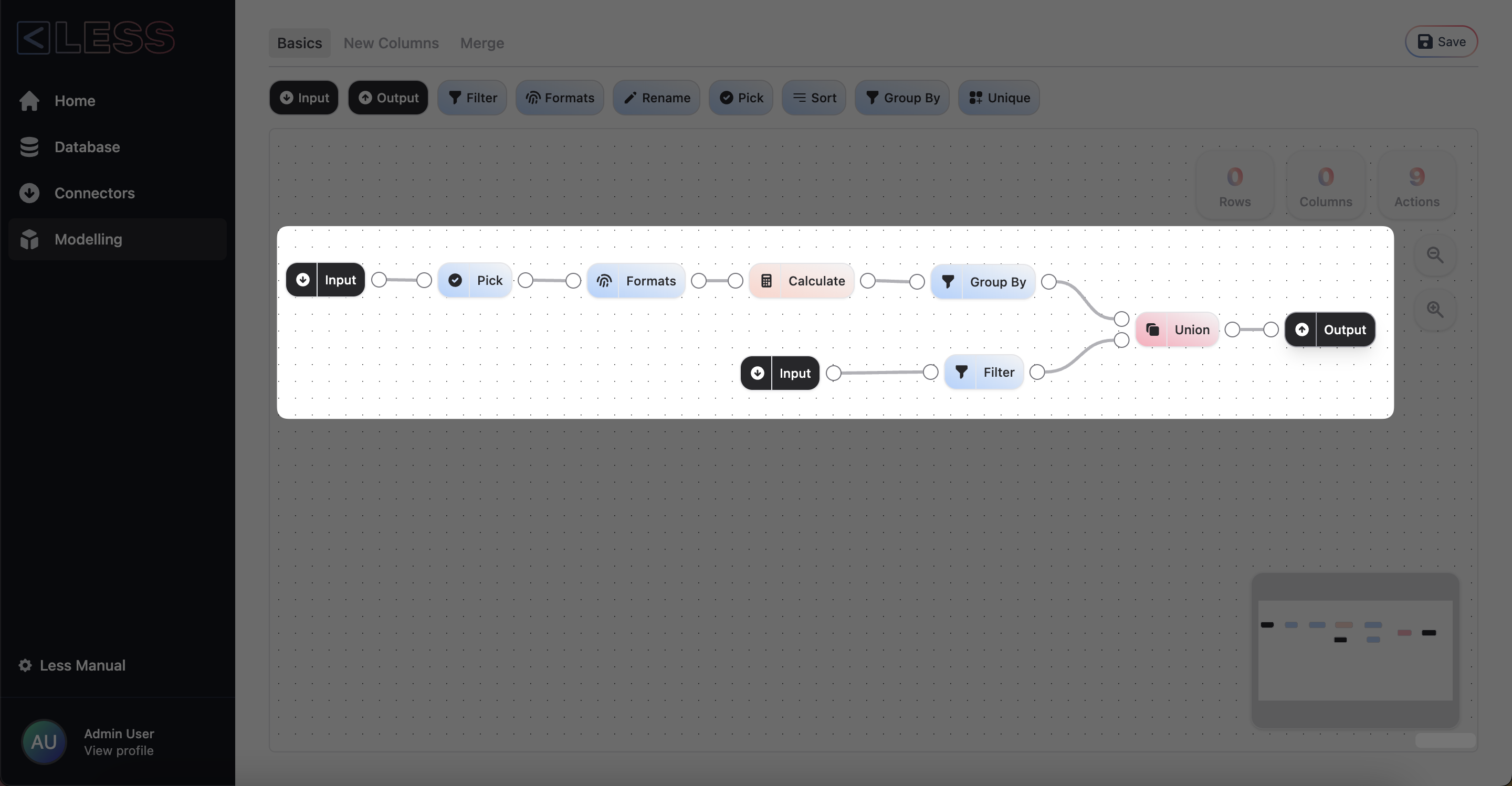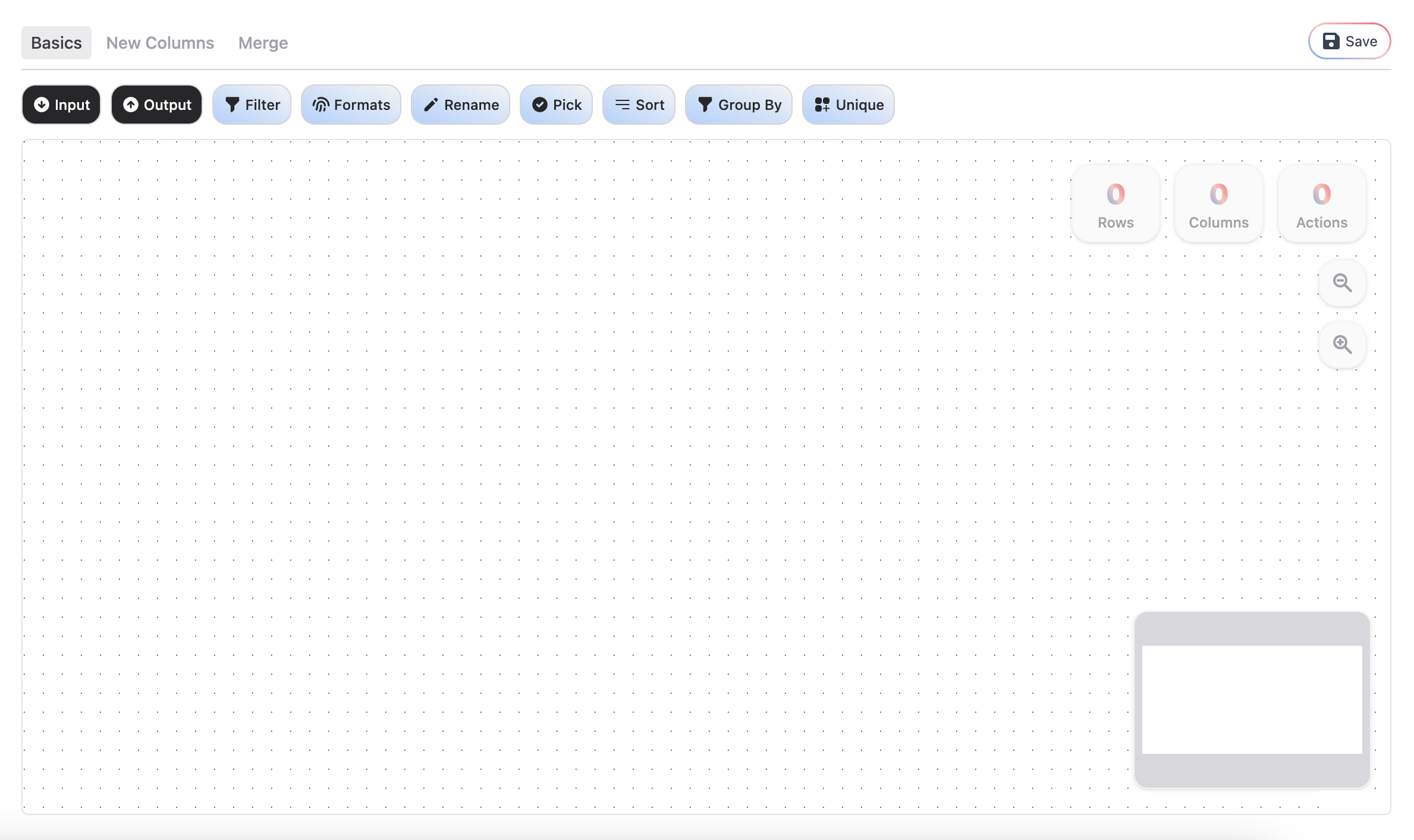 The Canvas is where the magic happens. Drag-and-drop Actions to transform your raw data into exactly the answer you're looking for.